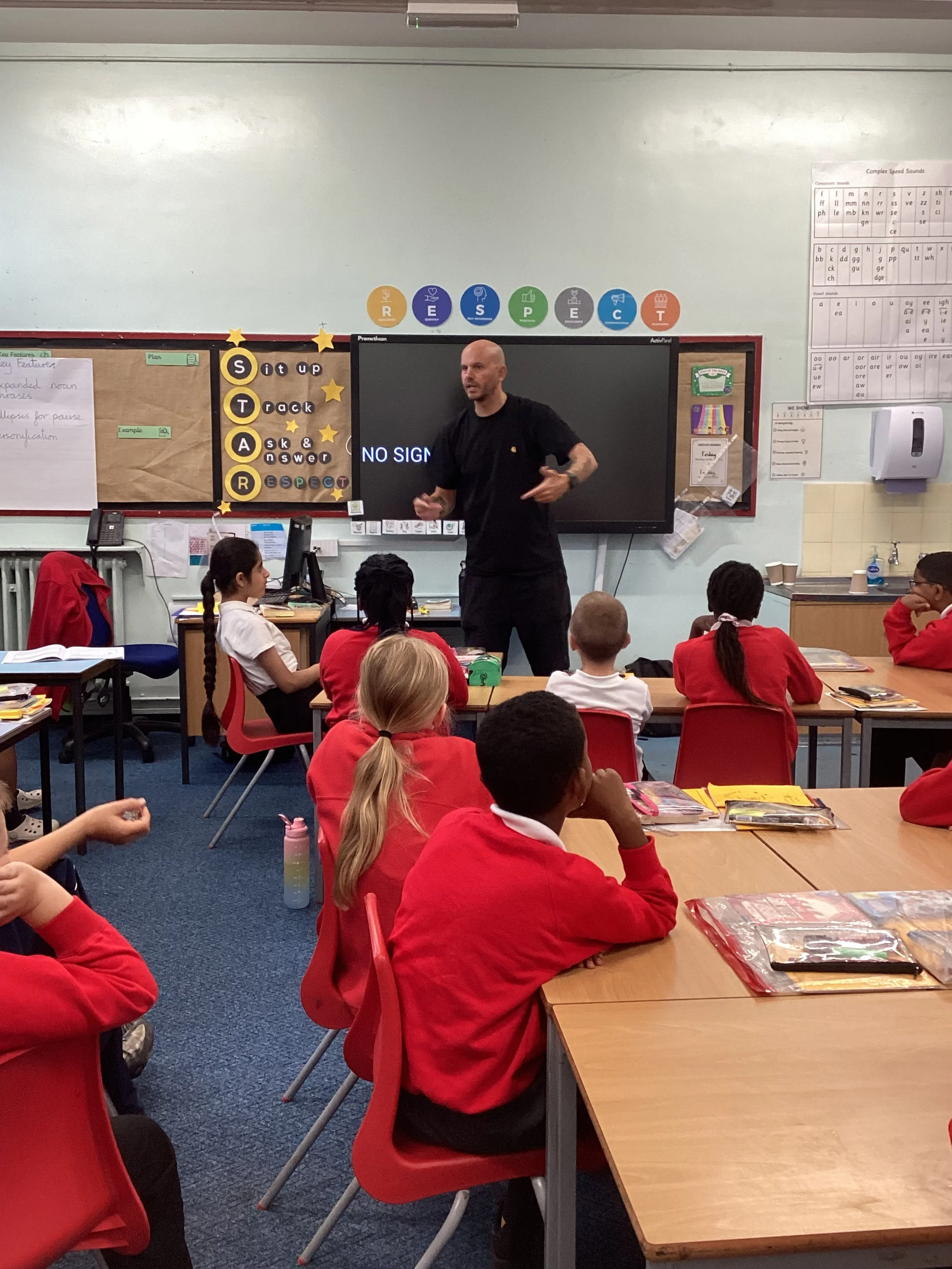 Year 5 were lucky enough this week to be visited by the best-selling author of The Final Year, Matt Goodfellow. We have thoroughly enjoyed reading The Final Year as a class in DEAR time and it is unique in the way it is written as a verse novel. This means the story is told through poetry and the main character, Nate, expresses his thoughts and feelings of the challenges he faces in the final year of primary school. During his visit, Matt taught the children how to write through poetry and everyone in the class had a go at writing their own poems in his style. Overall, it was a great morning and everyone in 5BC enjoyed meeting an author as successful as Matt has been and hopefully he has inspired some of the children to be future poets!